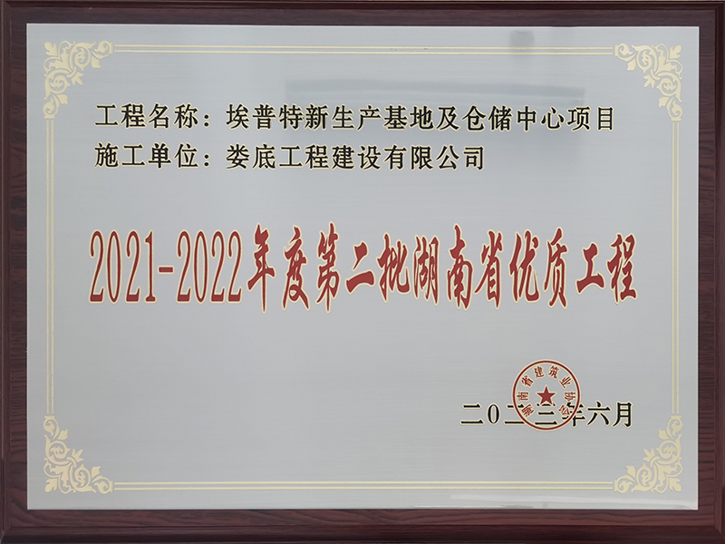 2021-2022年度埃普特新生產(chǎn)基地及倉儲(chǔ)中心項(xiàng)目第二批湖南省優(yōu)質(zhì)工程獎(jiǎng)牌