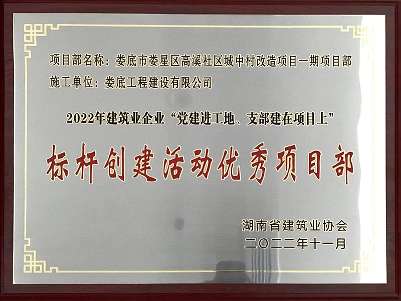 2022年婁底市婁星區高溪社區城中村改造項目標桿創建優秀項目部獎牌